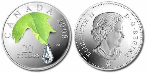 Главная » Фотоальбом » Монетные дворы мира » Канада, Оттава » A Colorful Canadian Maple Leaf Coin with embedded